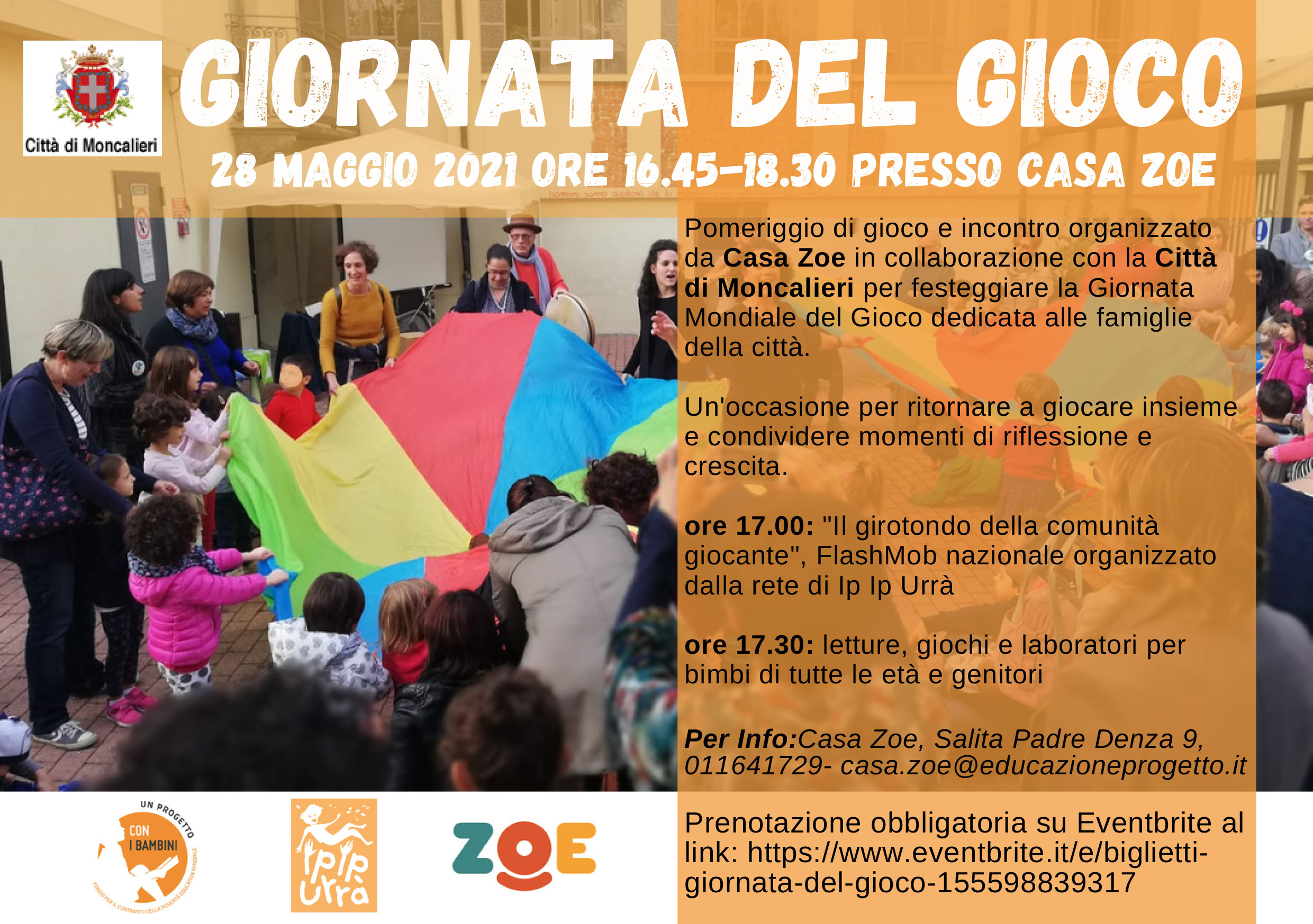 Pomeriggio di gioco e incontro organizzato da Casa Zoe in collaborazione con la Città di Moncalieri per festeggiare la Giornata Mondiale del Gioco dedicata alle famiglie della città.