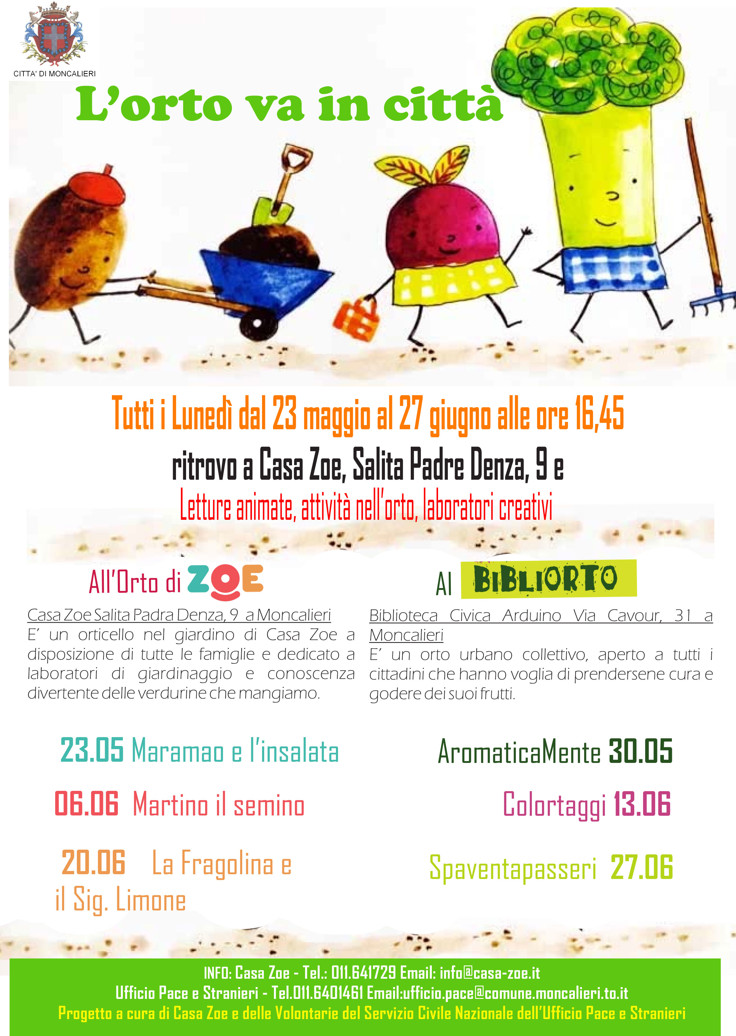 Ciclo di letture animate, attività nell’orto e laboratori creativi tutti i lunedì all’orto di Casa Zoe e al Bibliorto della Biblioteca Civica A. Arduino.